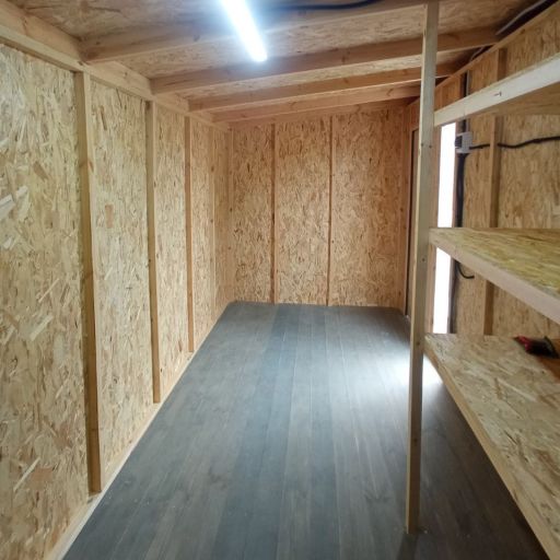 Ниже фото внутри хозблока с обшивкой стен из ОСП-плит с гибкой черепицей снаружи